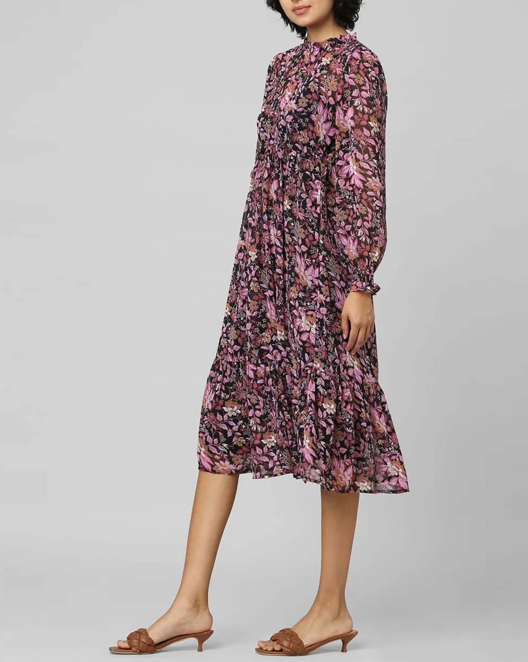 Black Floral Midi Dress