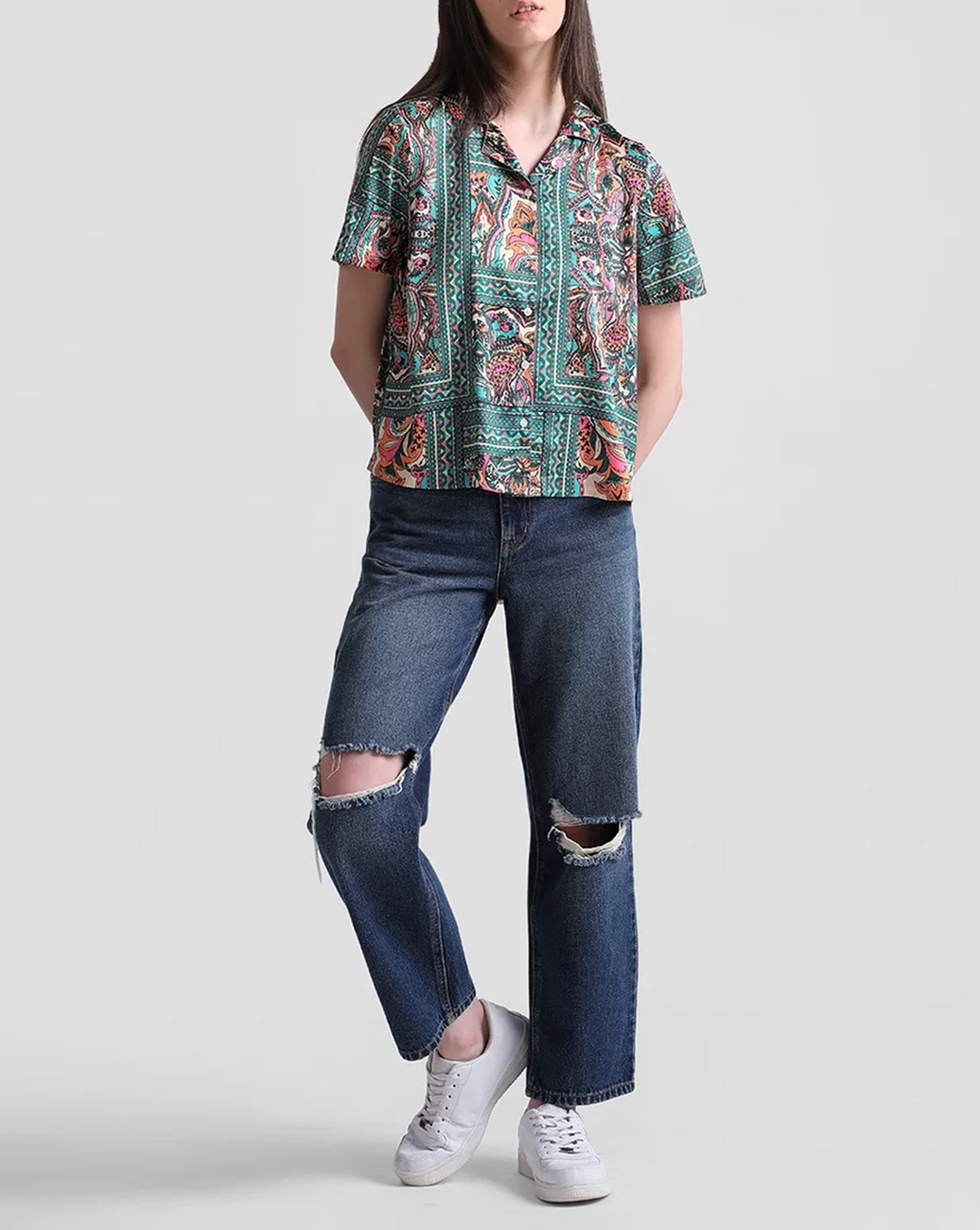 Orange Abstract Print Satin Shirt